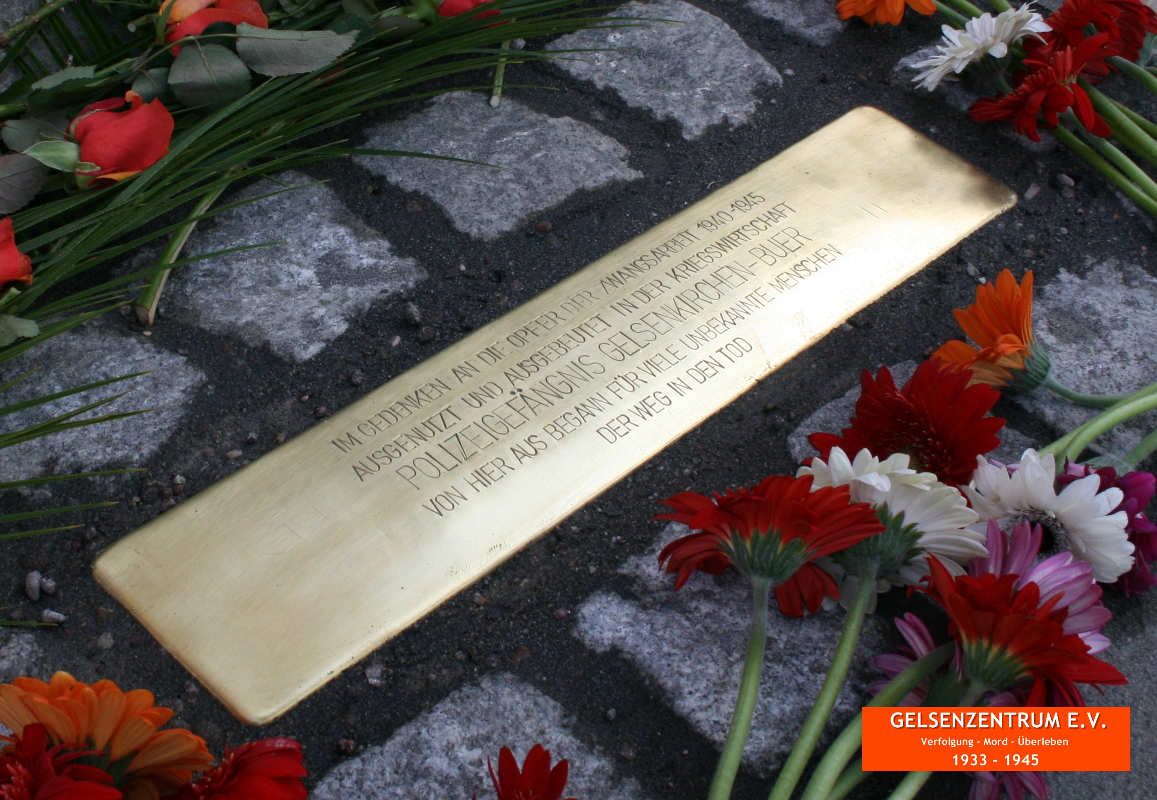 Stolperschwellen sind eine Sonderform der Stolpersteine, sie werden von Bildhauer Gunter Demnig gestaltet und verlegt. Stolpersteine sind jeweils einem einzelnen Individuum gewidmet, Stolperschwellen gedenken Opfergruppen und Unrechtsorten. Die Stolperschwelle in Gelsenkirchen wird auch symbolhaft im Gedenken an mehr als 40.000 Männer, Frauen und Kinder aus West- und Osteuropa verlegt, die in Gelsenkirchen zwischen 1940 und 1945 als Zivilisten oder Kriegsgefangene zur Ableistung von Zwangsarbeit in der deutschen Kriegswirtschaft und Rüstungsproduktion ausgenutzt und als billige Arbeitskräfte ausgebeutet worden sind. Der Text auf der Schwelle erinnert auch an die unbekannten Zwangsarbeitenden, für die sich der Weg in den Tod vom Polizeigefängnis nach heutigem Forschungsstand nachweisen lässt. Namenlos werden diese Toten wohl bleiben, denn Aufzeichnungen darüber, wer sie waren, fehlen.