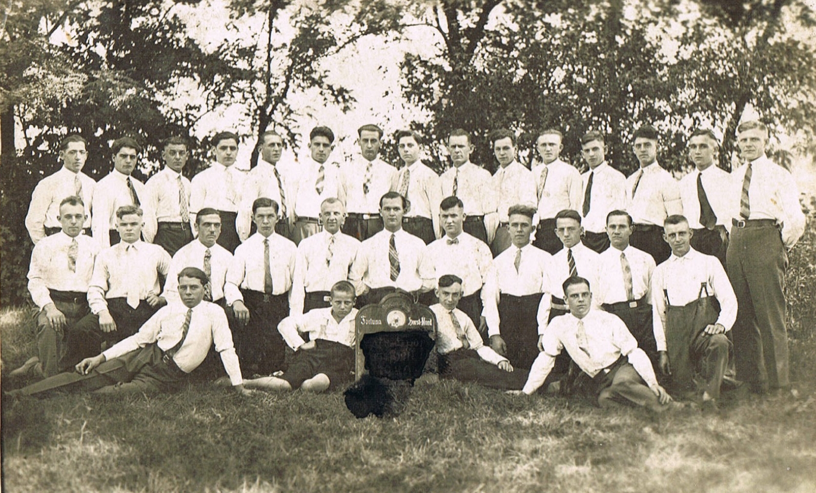 Abb. 1: Karl Delbeck (stehend, re. außen) war von 1930-1933 Vereinsvorsitzender von "Roter Sportverein Fortuna Gelsenkirchen-Horst", das Foto entstand 1930.